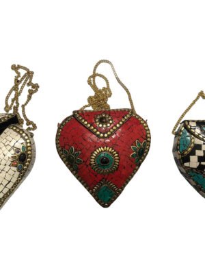 Metal Mosaic Clutch Purse Hear Shape Bag