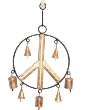 Peace Sign Symbol Iron Metal Wind Chime with Rustic Bells