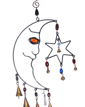 Wrought Iron Moon Star Wind Chime With Marble Eye & Beads